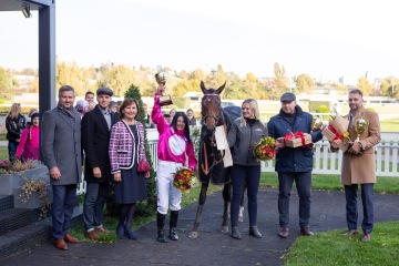 Vítězům srdečně blahopřála a ceny předala ředitelka společnosti RENOMIA Jiřina Nepalová. „Velice mne těší, že se RENOMIA mohla stát titulárním partnerem tohoto jubilejního dostihu, je to velká čest. Všichni účastníci předvedli krásné sportovní výkony a jako žena mám přirozeně velkou radost z toho, že na pomyslných stupních vítězů stanuly hned dvě skvělé jezdkyně,“ řekla Jiřina Nepalová.